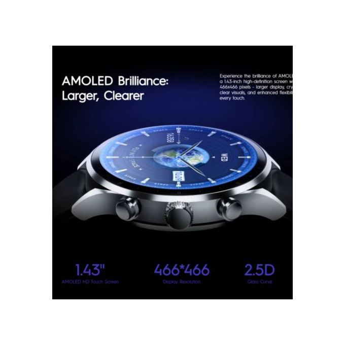 – Display: 1.43-inch AMOLED HD touch screen with 466×466 pixels